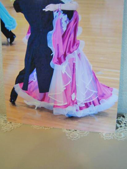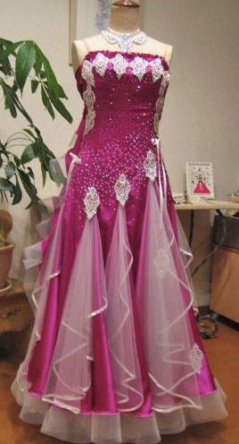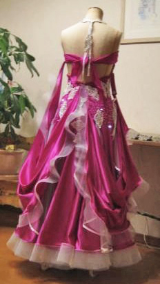 鮮やかなサテン生地がフロアで映えます。オーガンジーが入っており、裾も大きく広がります。また両手を広げた際の羽の部分のデザインも特徴的で綺麗です。