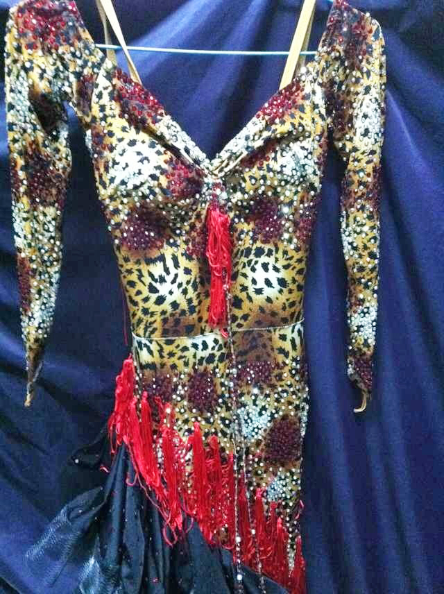 クリスタルクローバーのスポンサードレスです。個性的で強く見えます!胸元やベルトには石がたくさんつき豪華です。フリンジ・スカートがよく舞い目立ちます。