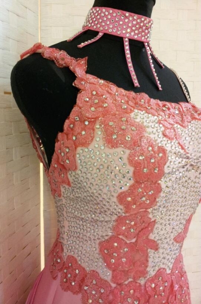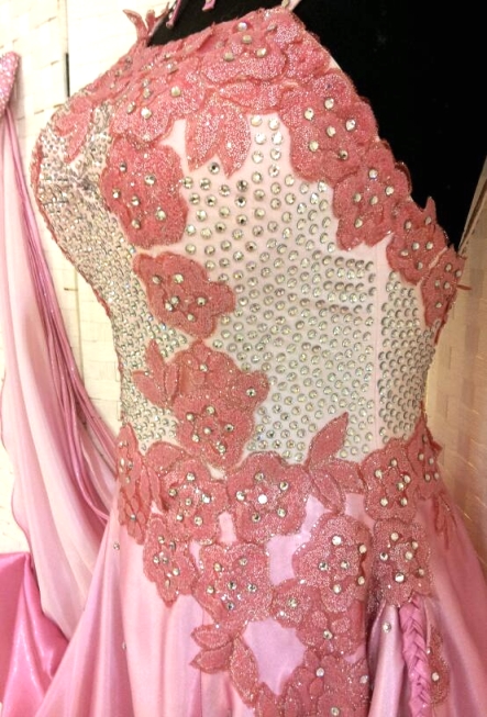ボディはピンクの花のモチーフとスワロフスキーのストーンがびっしりと貼られています。