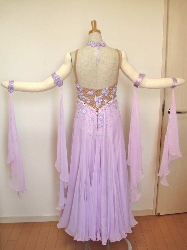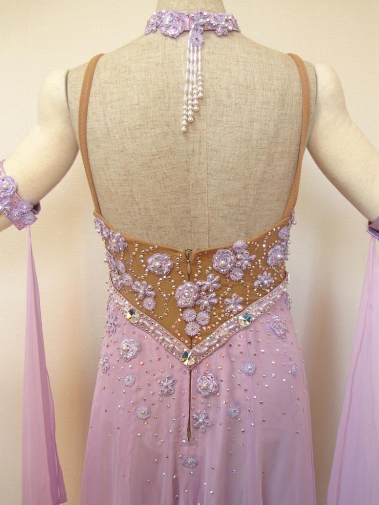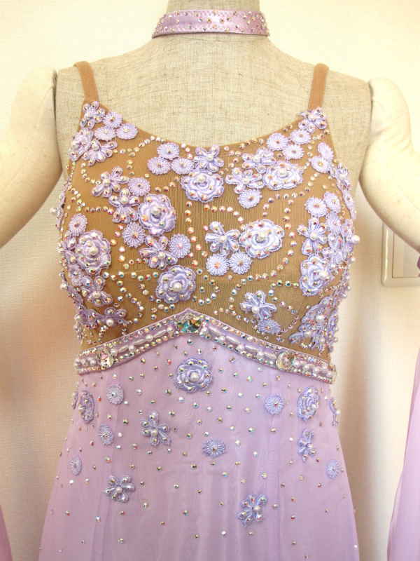 きれいなライラック色で花のモチーフが上半身についていてかわいい感じです。フロートが左右2本づつあります。チョーカーもついています。