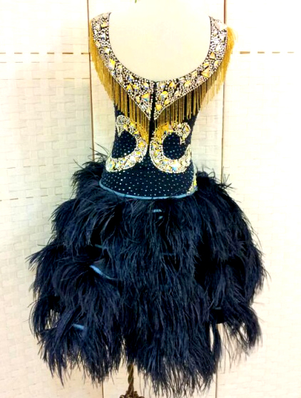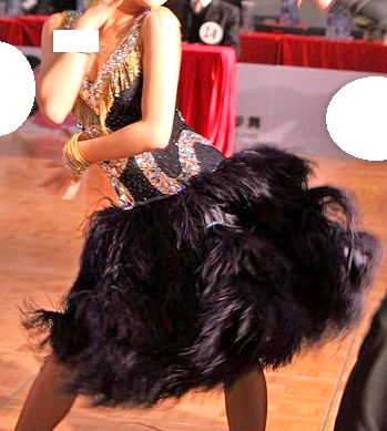 スカートには羽根がたっぷり使われボリューミ−です。
