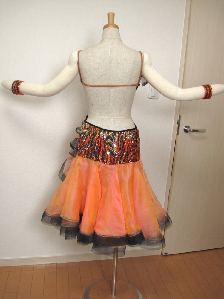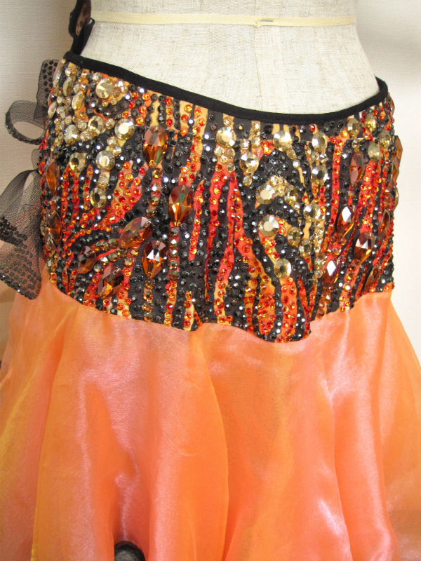 スカートはシャーベットオレンジのオーガンジー素材が重ねられ、裾は黒のソフトボーンでボリュームたっぷり非常に良く踊ります。