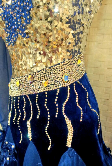 ウエストラインにはスワロフスキーのストーンがびっしりと貼られています。