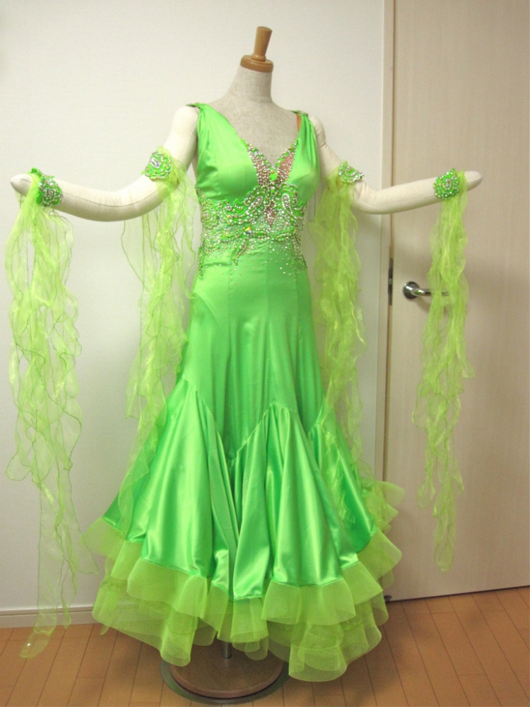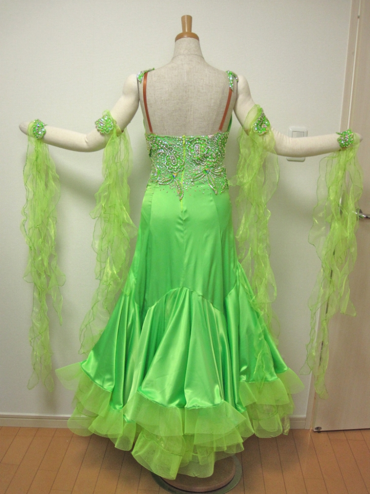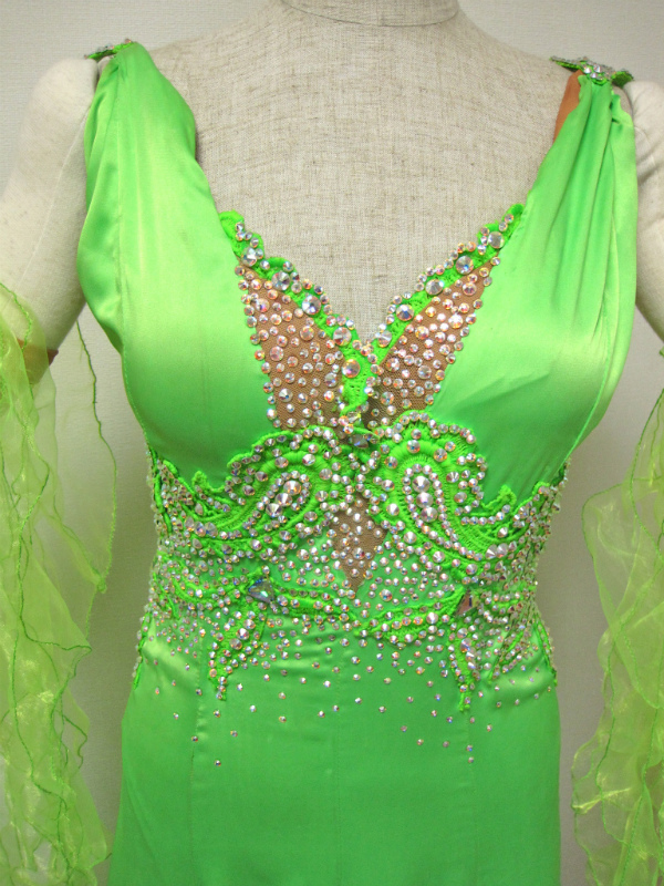 ボディの胸元やモチーフにはスワロフスキーのストーンがびっしりと貼られています。