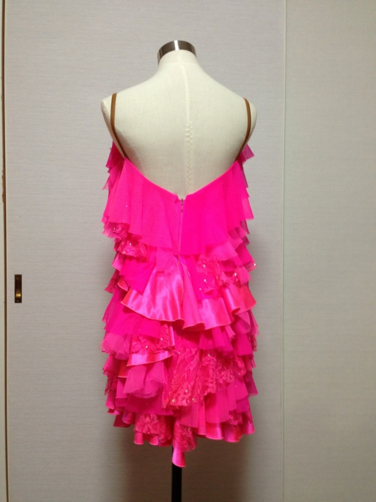 すごく踊る強いラテンドレスです。細い人がボリュームをだすのに効果的です。色がピンクでかなり目立ちます。
