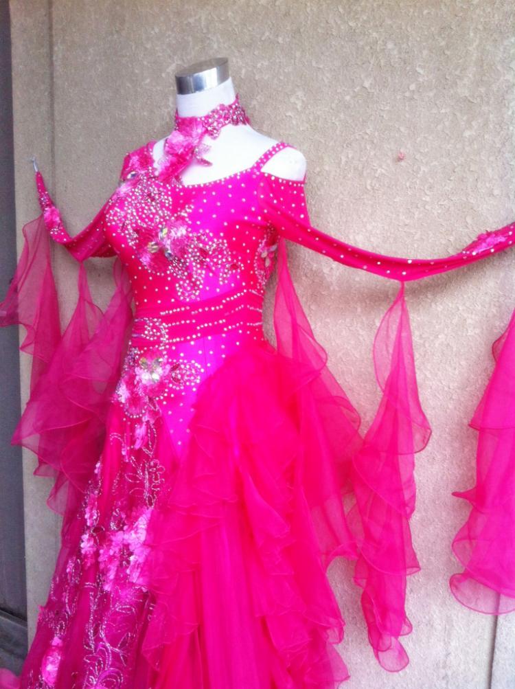 スカート部分:内側からサテン生地1枚、立体モチーフのオ-ガンジー2枚 (太い幅のホースヘアーつき)