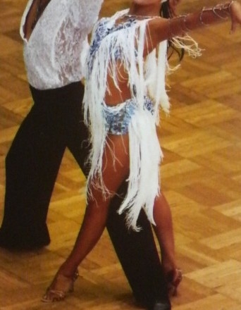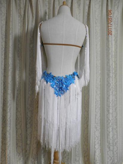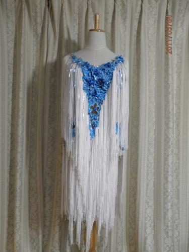 白と水色のコントラストが映える、爽やかなラテンドレスです。