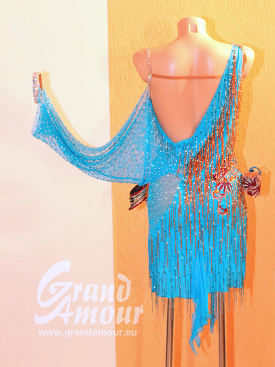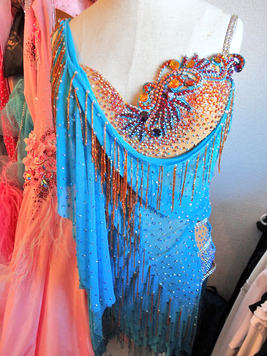 タイトめのミニスカートですが、ビーズフリンジとドレープでかなりボリュームが出るので小柄な人にもお勧めです。