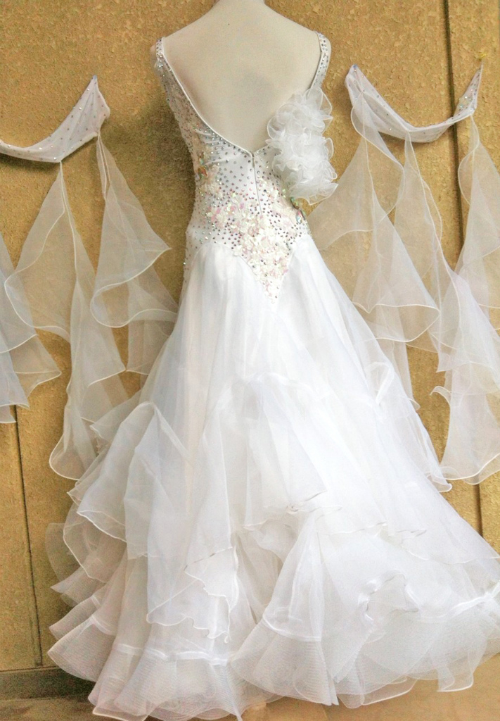 スカート部分:内側からサテン生地1枚、オーガンジー3枚、(白のホースヘアー付) インナーパンツタイプです。