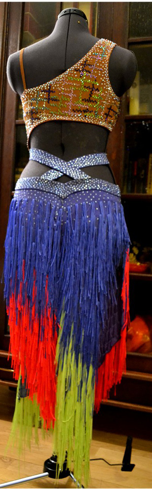アシンメトリーでとてもよく踊る美しいロングフリンジドレス。