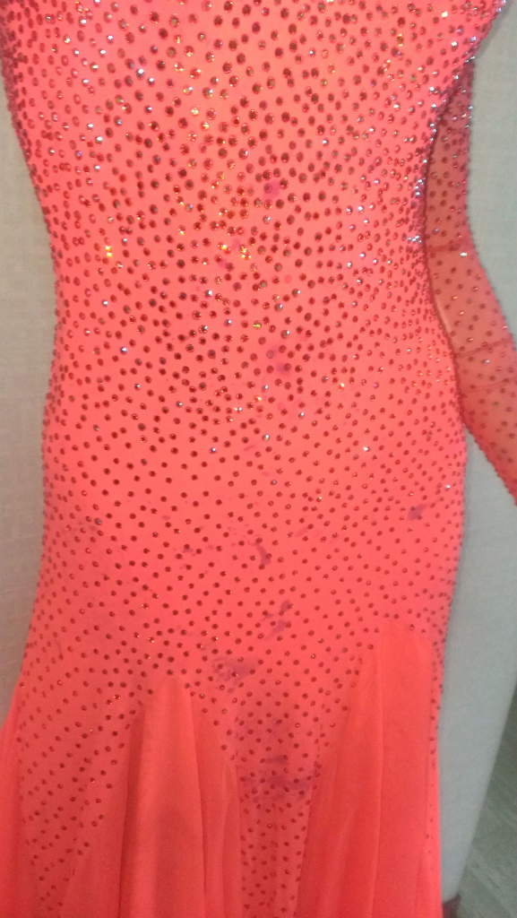 デコルテ部の痛みが激しく石がほとんど落ちています。メッシュごと交換リフォームすることをお勧めします。前部にシミあり、首ホック破損。