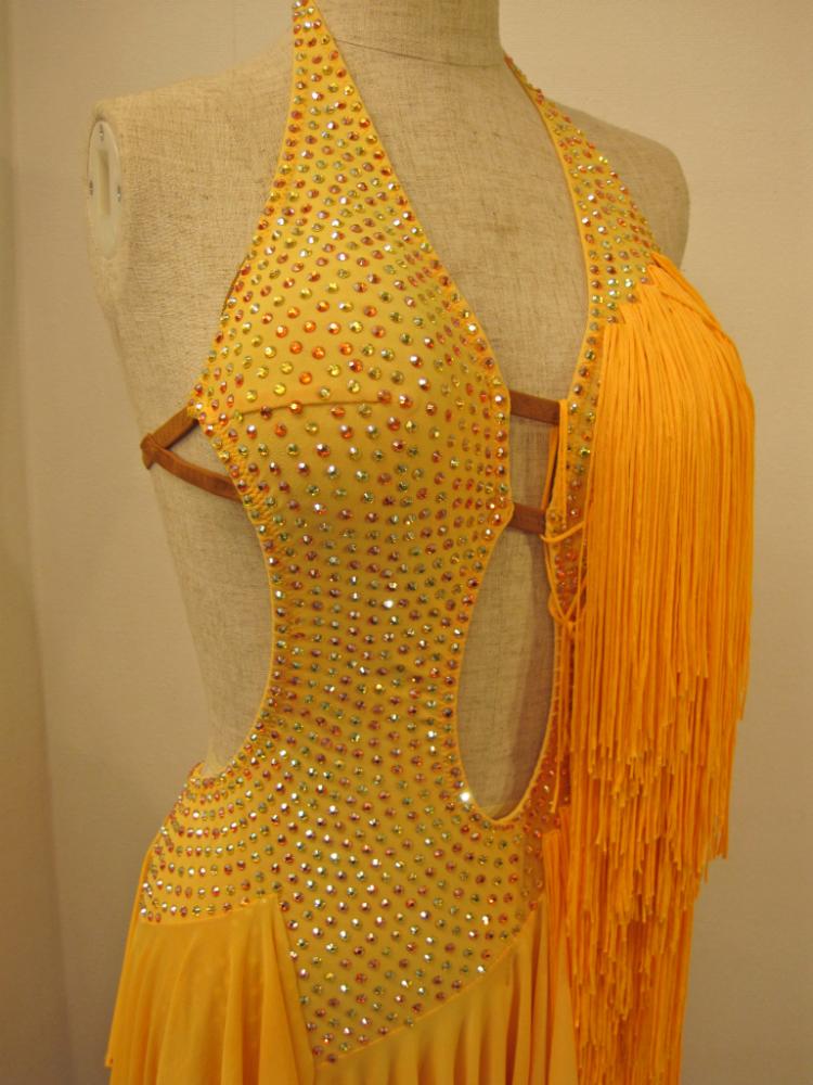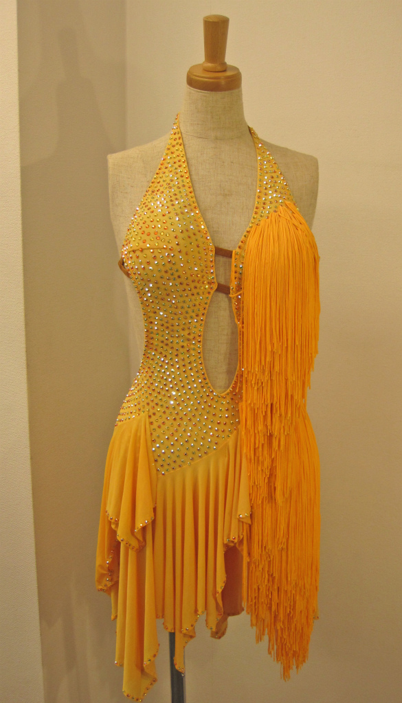 胸元からスカートまで沢山のフリンジになっているので、とてもドレスが良く踊ります。