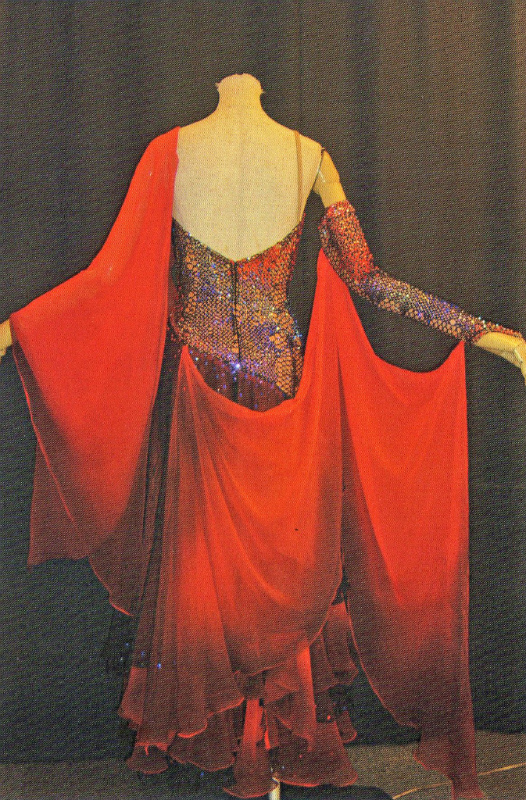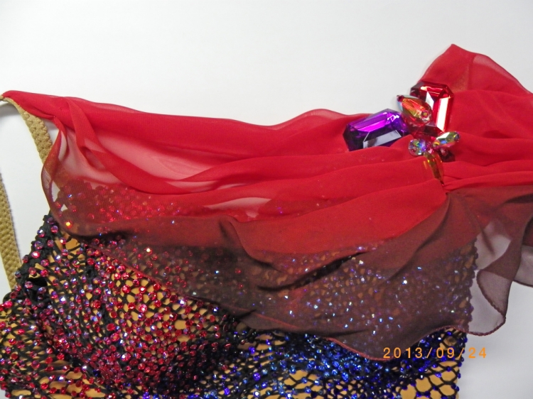 ネット地のボディには沢山の赤、青、紫のスワロスキーが付いています