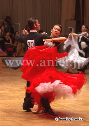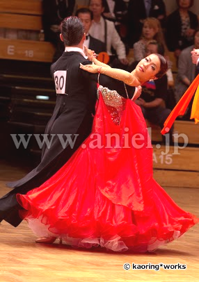 インナースカートには白のホースヘアーが使われているので重くなりすぎず、踊ると白が見え踊りを大きく見せてくれます。デコルテにはストーンがびっしりついた飾りが付いています。ウエストから背中に白のラインがあり背中には羽根のような飾りがあり後ろ姿も可愛らしいです。ハイウエストのデザインですので背の低い方におすすめのドレスです。