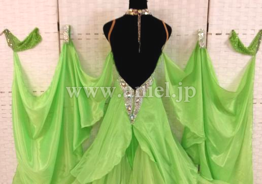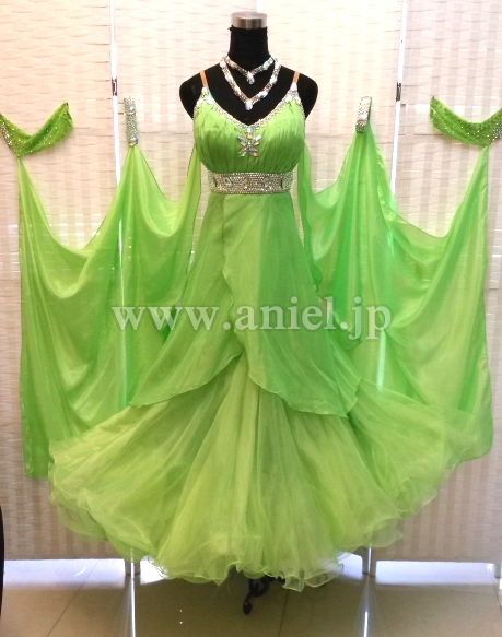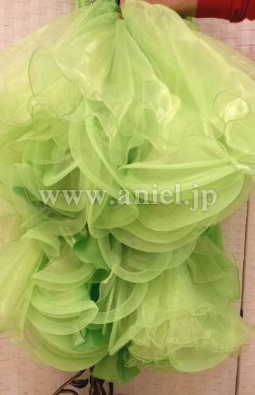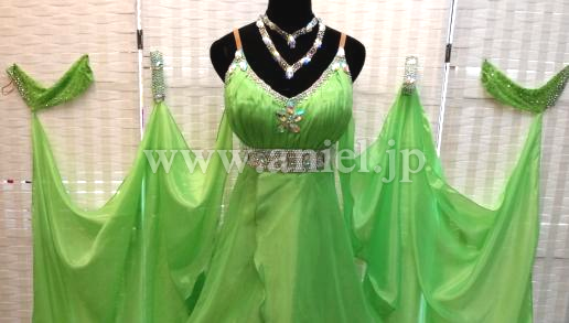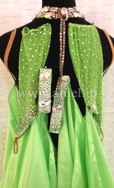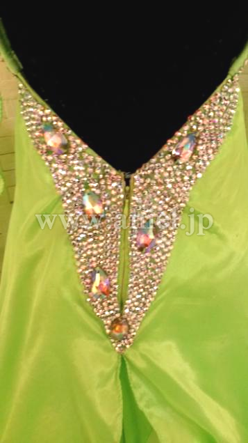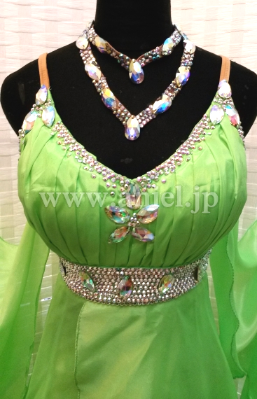 ウエストからヒップにかけてはスワロフスキーストーンがびっしりと貼られとても豪華です。ストーンたっぷりの豪華なバングル、ネックレス付属。