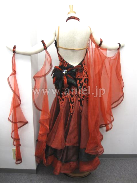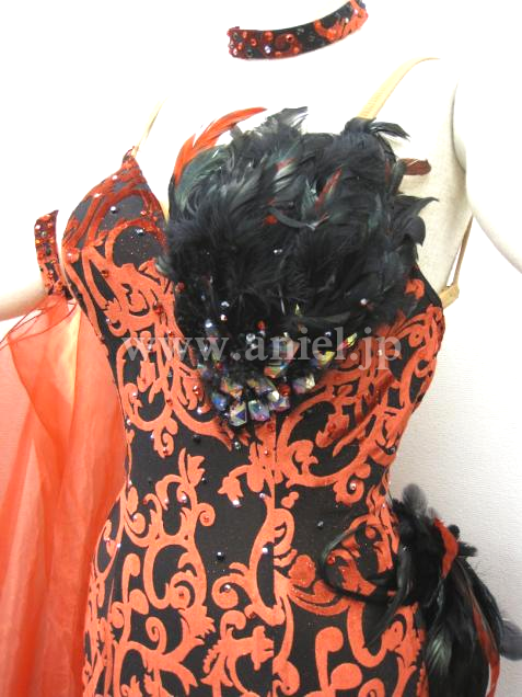 ボディの模様が美しいです、胸元やヒップには羽根があしらわれ大きなストーンが豪華に飾られています。