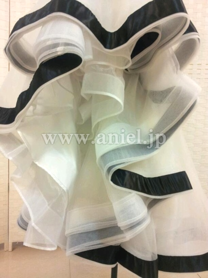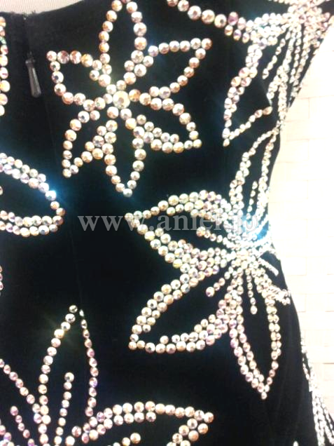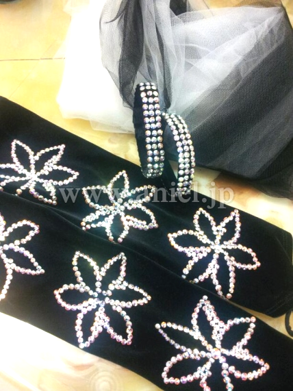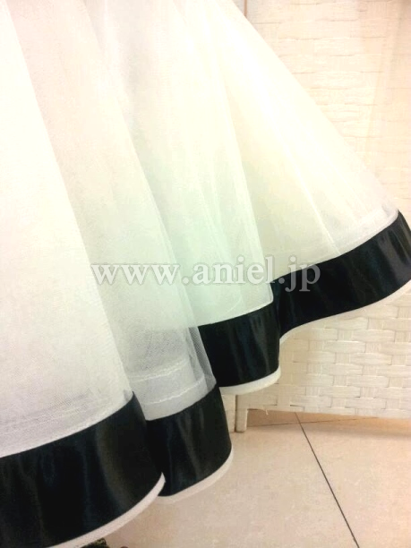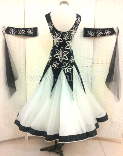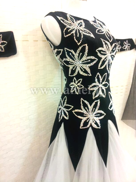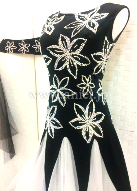 フロアで花がキラキラと光りとても目立ちます。スカートは流行りのAラインでボリュームがありよく踊ります。