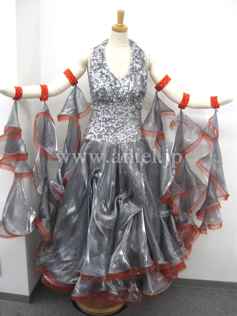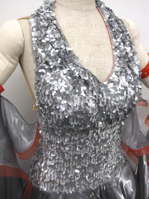 石はついていませんが光沢のあるスカートとボディのスパンコール生地がとても目立つドレスです。