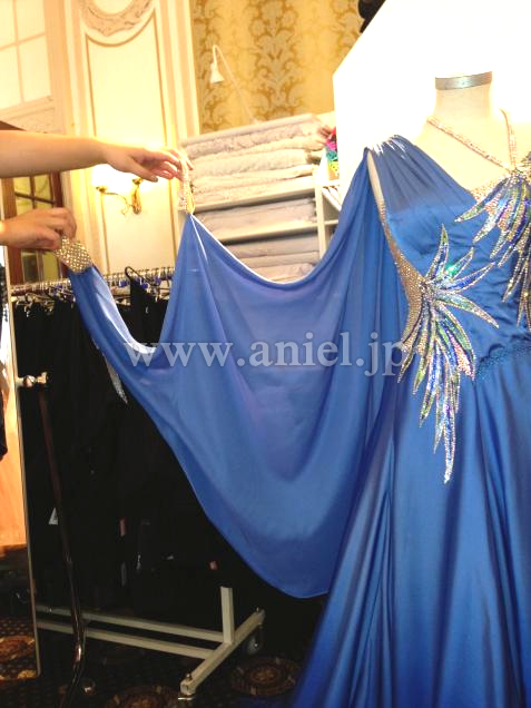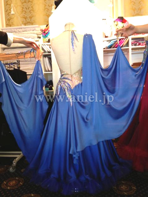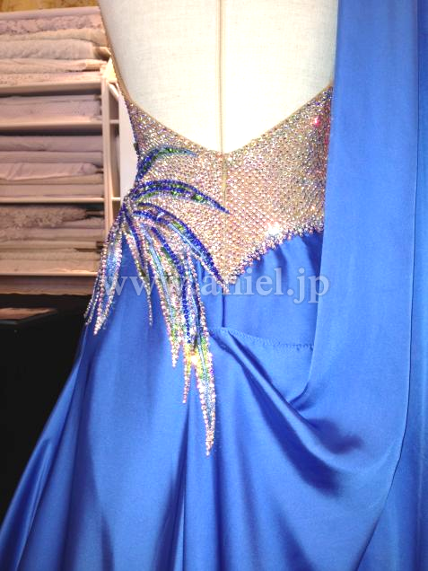 モチーフとボディは、たくさんのオーロラの石で飾られています。フロート、スカート共良く舞い、踊りやすいドレスです。