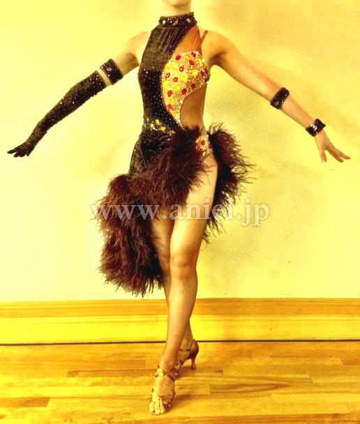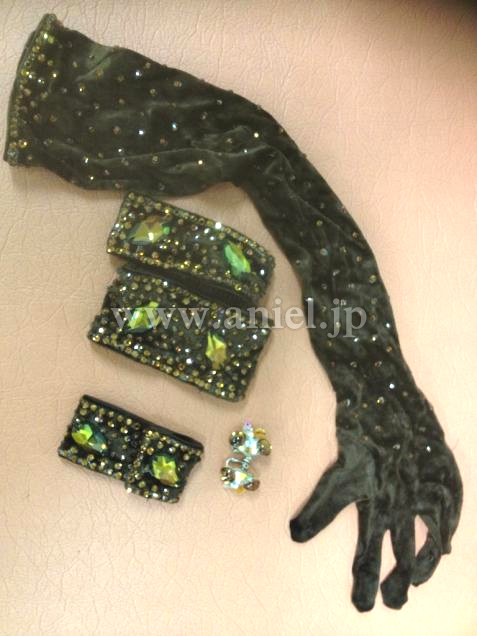 左右のデザイン性があり踊ると違った表情が見えます。かなりストレッチがききますので適応サイズは広いと思ます。茶色などでセルタンや化粧汚れも目立ちにくく、長く使用することができます。イヤリング、ブレスレット、手袋 髪飾り付き。