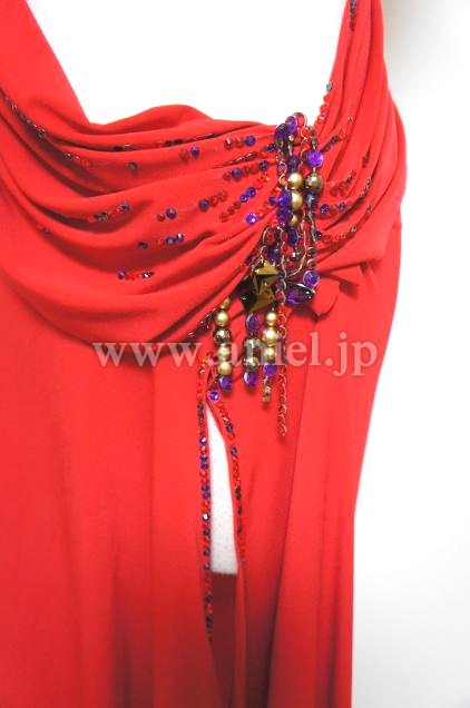 スリットの入ったロングドレープのスカートがセクシーなドレスです。