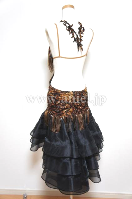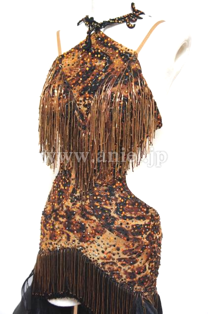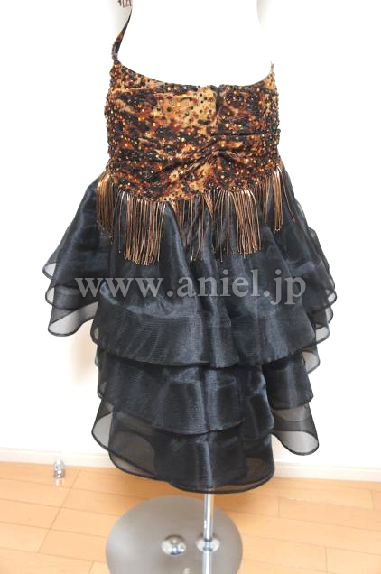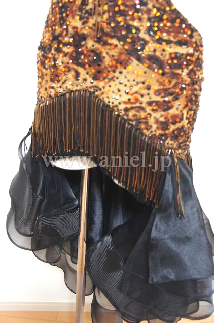 豹柄のボディに黒の段々スカートがセクシーかつストロングなイメージを与えるドレスです。
