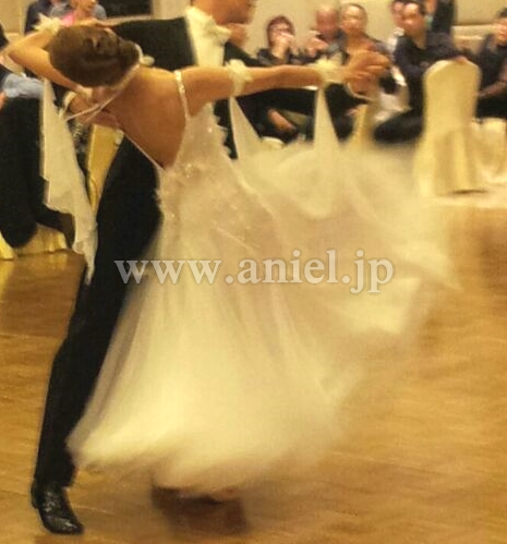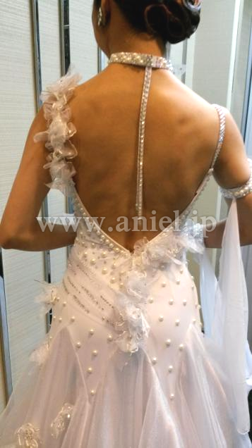 ボディはたくさんのスワロフスキーストーンとパールで飾られています。クリスタルクローバーの生地とフラワーもチーフが使用されています。