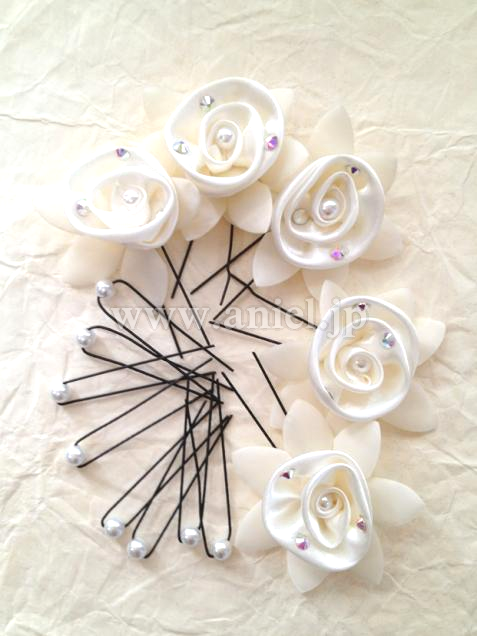 イヤリングと髪飾りをおつけします。