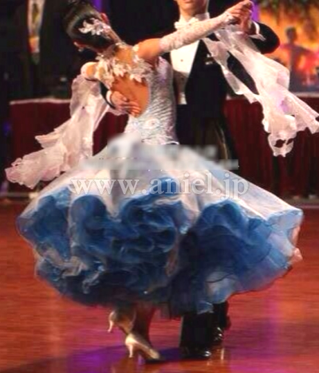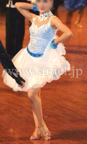 白と水色のスカートのコントラストが上品で素敵なドレスです。