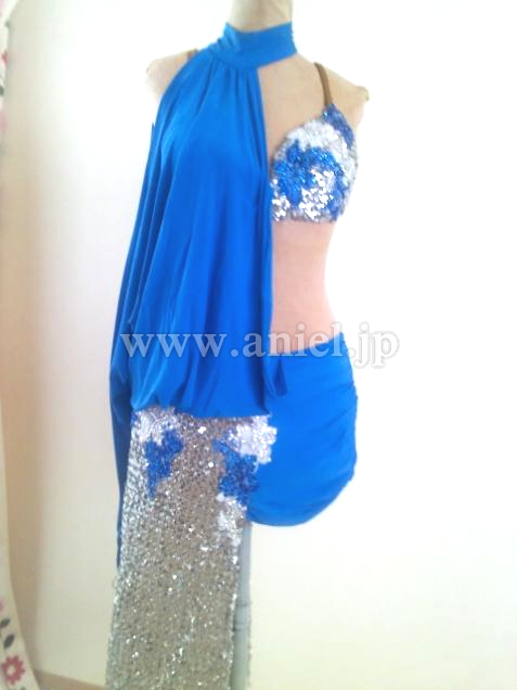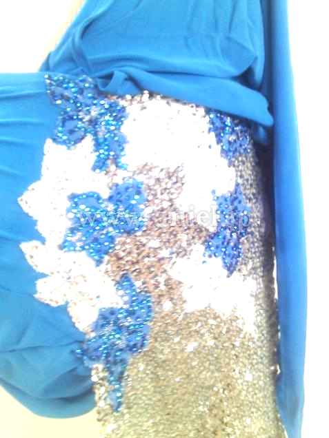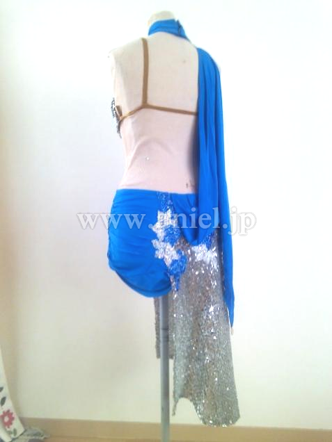 スカート部分のシルバースパンコールを着用者にあわせてカットしています。