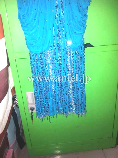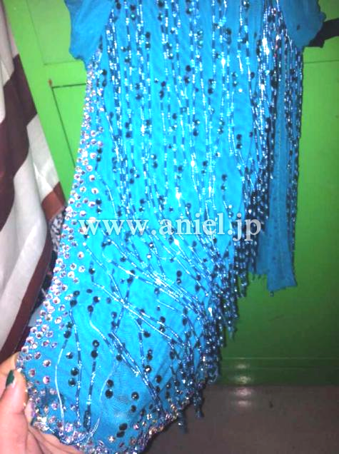 竹ビーズがびっしり着いておりストーンもスワロフスキー使用(全てではありません)フロアでは個性的でよく光り豪華で強く見えます。
