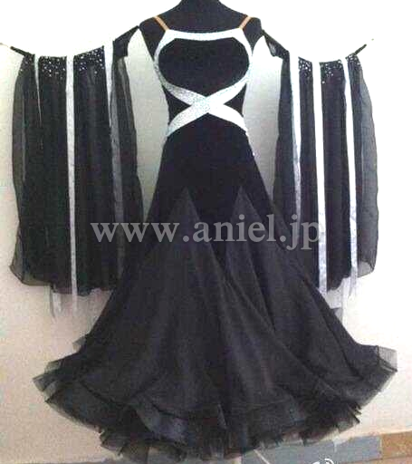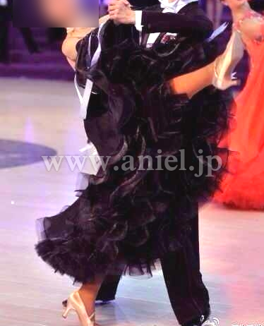 スカートはボリュームがありますが軽くよく踊ります。クリスアンの生地とスワロフスキーストーンが使われています。