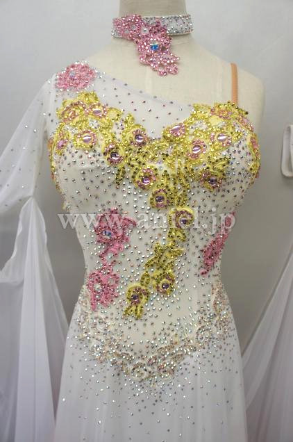 ボディにも黄色、ピンクのモチーフが貼られストーンで華やかに装飾されています。