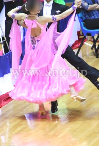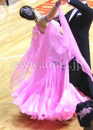 スカートはボリュームたっぷりですが軽くよく踊ります。クリスアンの生地が使われています。