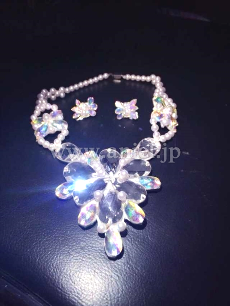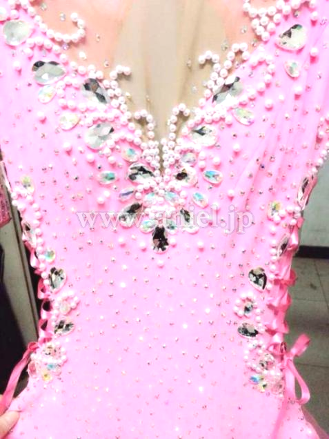 ボディはスワロフスキーストーンやパールで装飾されています。クリスアンの生地が使われています。