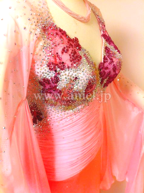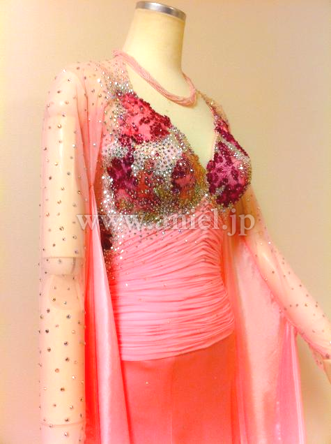 ハイウエストデザインで足を長く見せてくれます。淡いピンクがとてもキュートなドレスです。