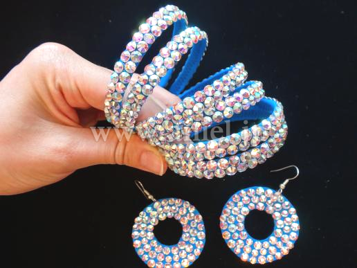 鳥の羽根のような3Dモチーフは、オーガンザを使って表現されています。プラスチック製の骨で固定されているので、踊っている間も形状を保てるような強度です。全体はクリスアン製のクレープ生地で作られており、やわらかく、なめらがな布の質感が踊りにも出ます。フリンジは同様にクレープ生地で作られています。適度な重みがあり、遠心力がかけやすく、通徐じゅうのフリンジよりも軽いのが特徴です。背面のクレープ生地がアシンメトリーになっており、踊るととても面白い表情を見せてくれます。