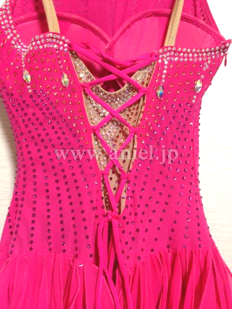 背中は編み上げデザインです。