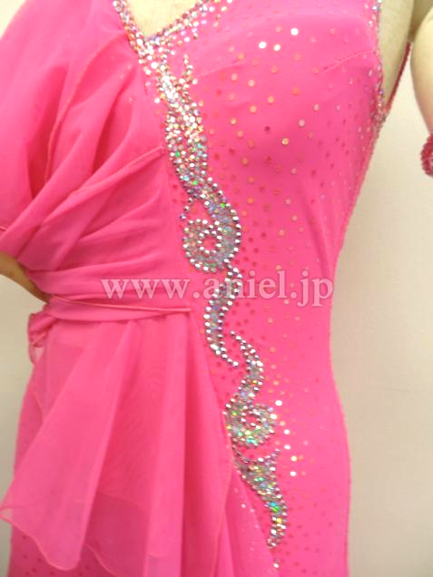 かわいらしい上品なピンクで石落ちもなく露出もほどほどでフロアで映えます。裾も軽くよく踊ります。