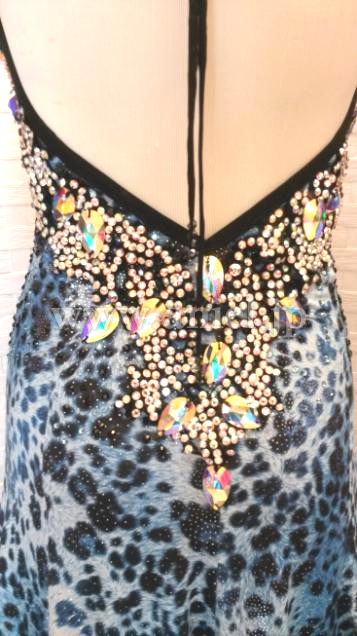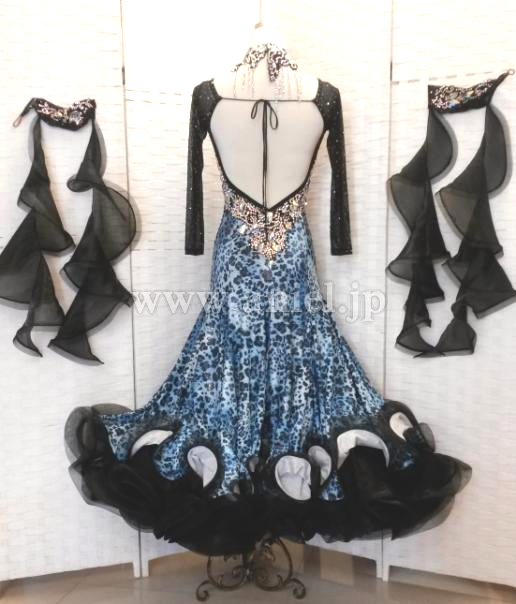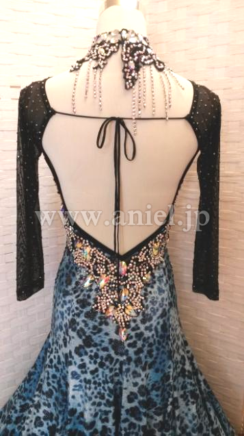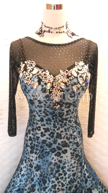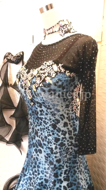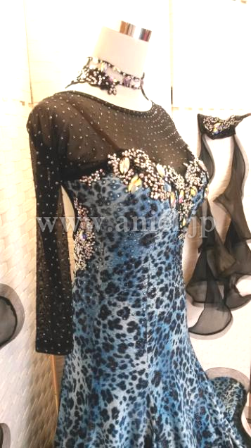 とても綺麗なクリスアンの青のレオパード生地が使われた印象的なドレスです。
