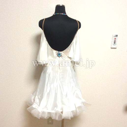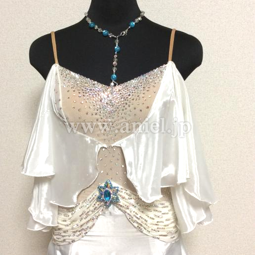 ベージュネットの袖付き、同色の石付き。ボディーにオーロラ、アクセントに青の石がついていて