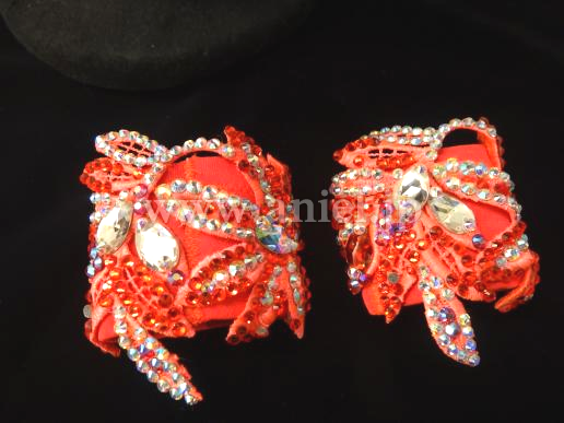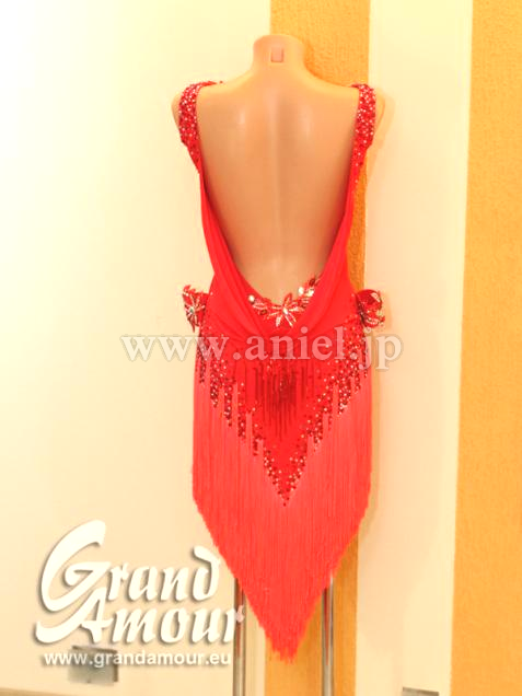 主体はクレープ生地、スカートはフリンジをアシンメトリーに付けています。シンプルなドレスですが、ストーンやフリンジがふんだんに使われていてとてもゴージャスなドレスです。バンダナと腕輪が付属しています。
