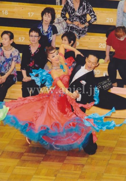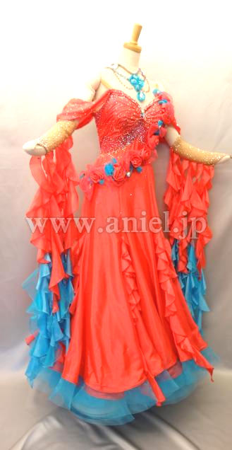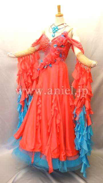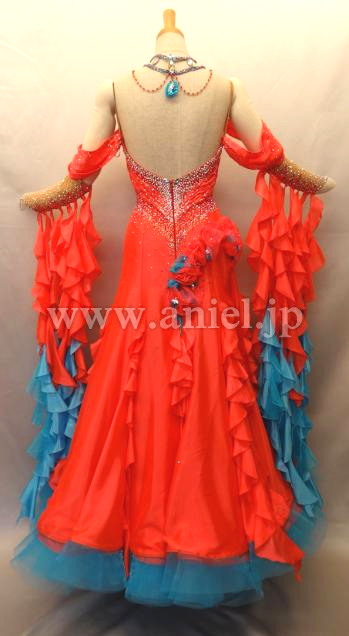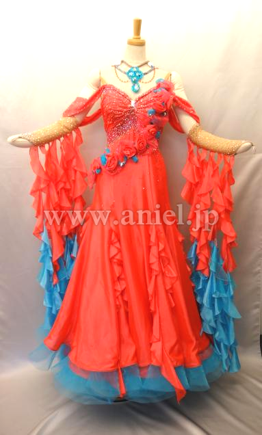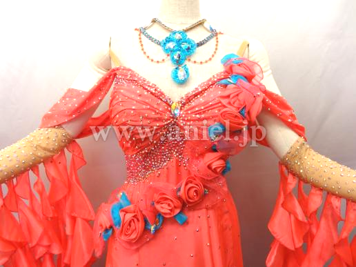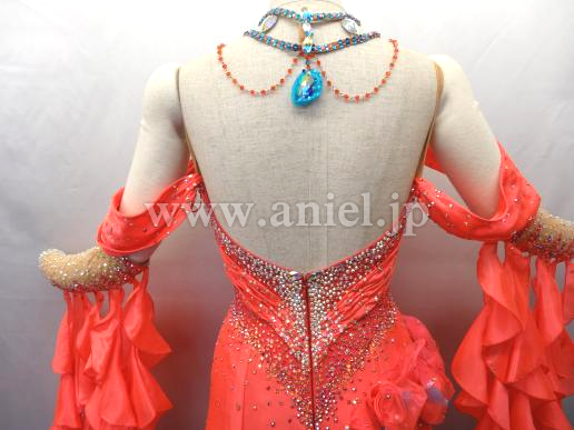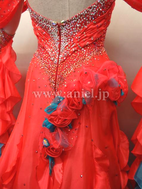 良く動き、良く目立ちます。コンペ向きドレスです。ネックレスなど、デイティールに凝っていて、着ると可愛い印象になります。
