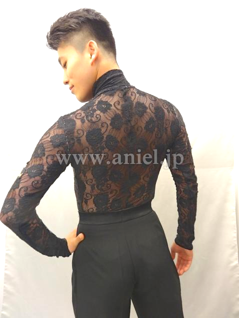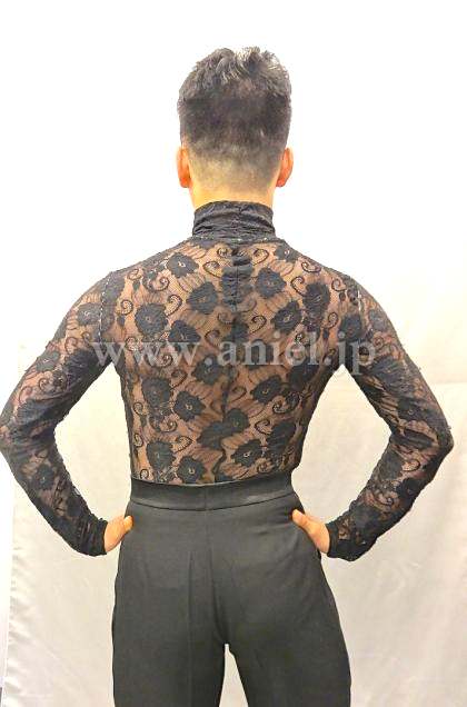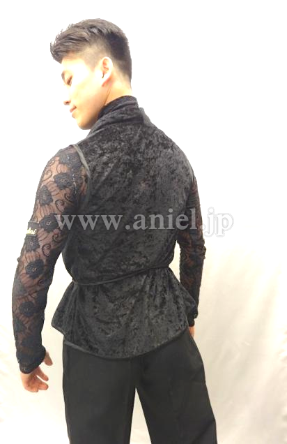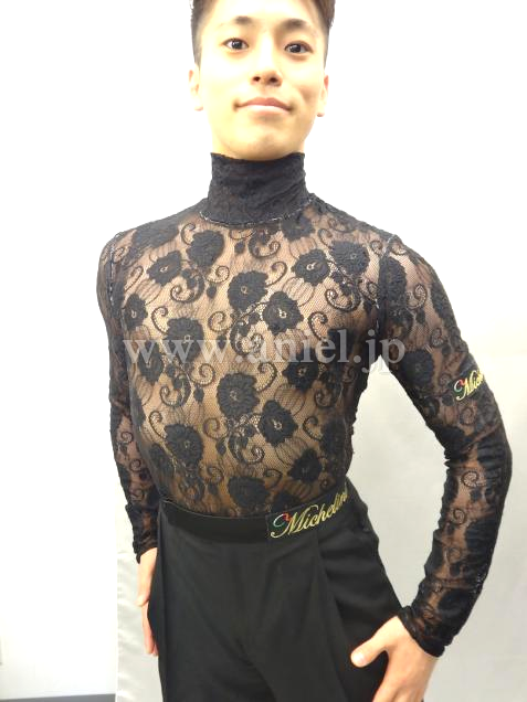 リカルド・コッキ、マウリッツィオ・ベスコボなど有名選手をスポンサーしているイタリアの老舗メーカーAltamoda Micheliniの既製品のラテンシャツです。シースルーのストレッチネットのタートルネックタイプのシャツに、ベルベット生地のオーバーベストを羽織るタイプの面白いデザインです。インナーとアウターはつながっていないので、別々に着用することが可能です。タートルネックのシャツのみでもかっこいいです。