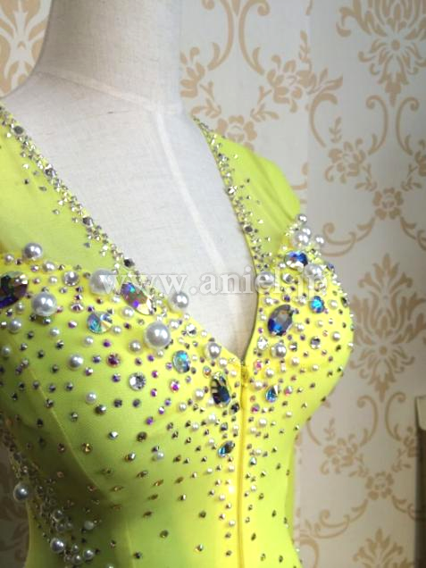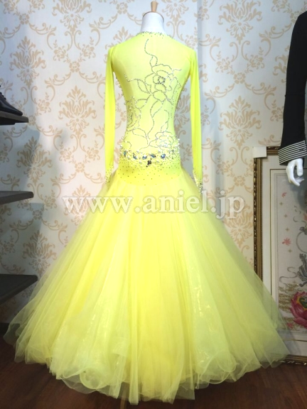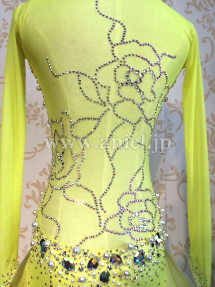 スカートはボリュームたっぷりでとてもキュートです。背中にはスワロフスキーストーンで薔薇模様が描かれています。