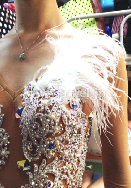 ボディのレースにはたくさんのスワロフスキーストーンが飾られよく輝きます。