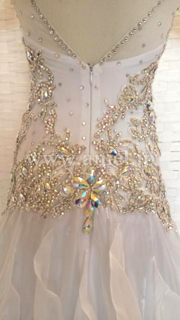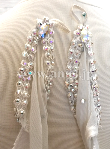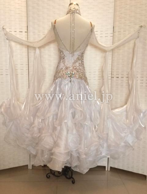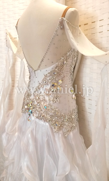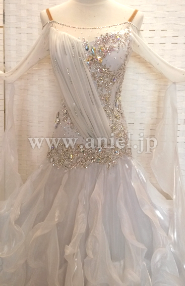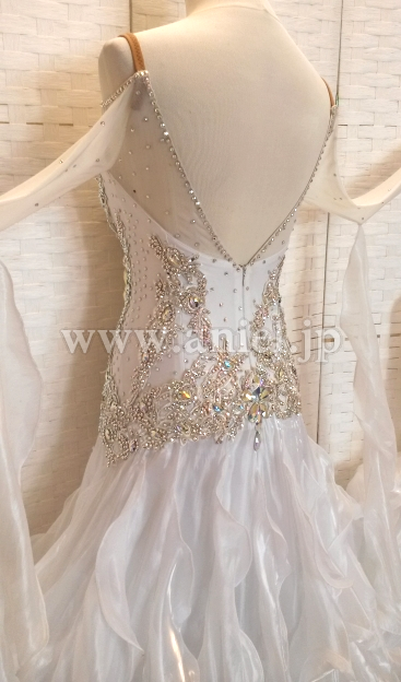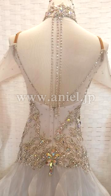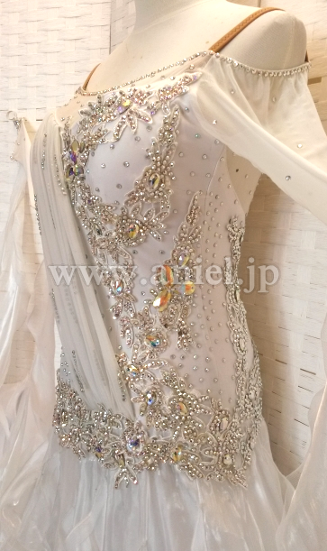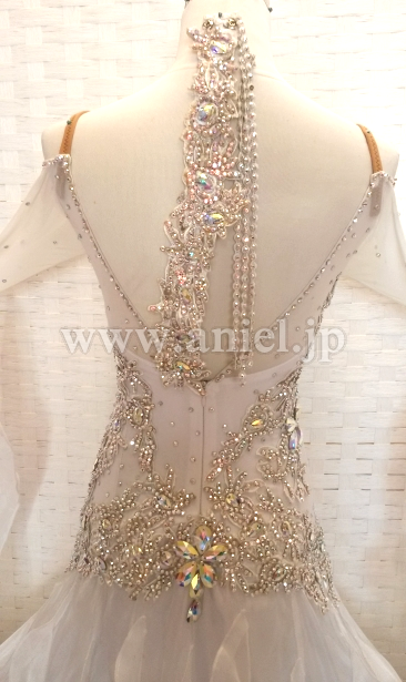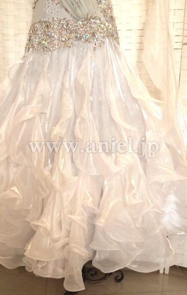 スカートには光沢のある生地が使用され、フロアで光りが当たると目立ちます。