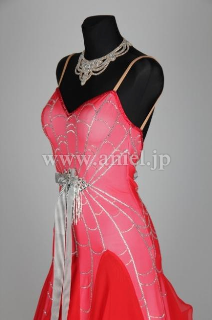 鮮やかな赤とストーンのラインの対比が美しくフロアで映えます。
