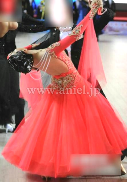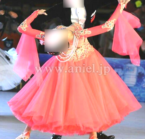 美しいタンゴフレアのカラーがフロアでよく映えるドレスです。