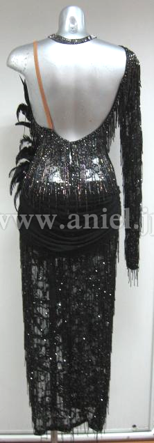 全身にストーンとビーズフリンジが大量に装飾され、とてもゴージャスなイメージです。ビーズフリンジが踊るとよく振れフロアで非常に目立ちます。